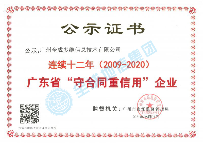 廣東省“守合同重信用企業(yè)”—連續(xù)十二年