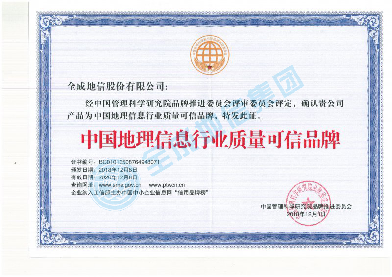 中國地理信息行業(yè)質(zhì)量可信品牌