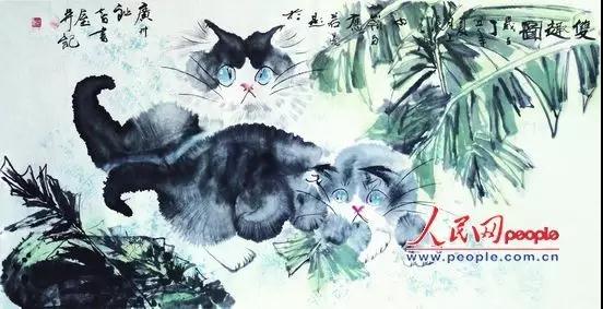 ▲《貓荷圖》,入選人民美術(shù)出版社、中國時代經(jīng)濟(jì)出版社聯(lián)合出版的《中國美術(shù)精品選集》
