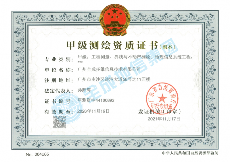 甲級測繪資質(zhì)證書