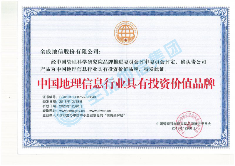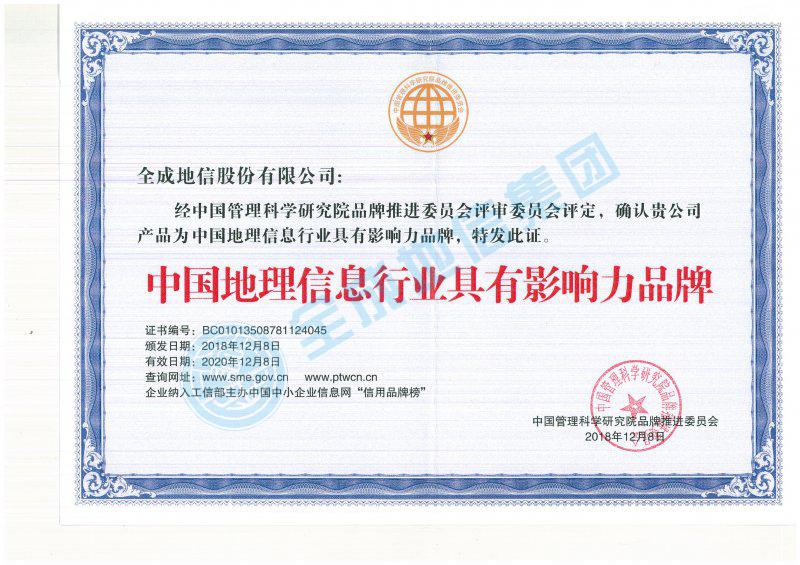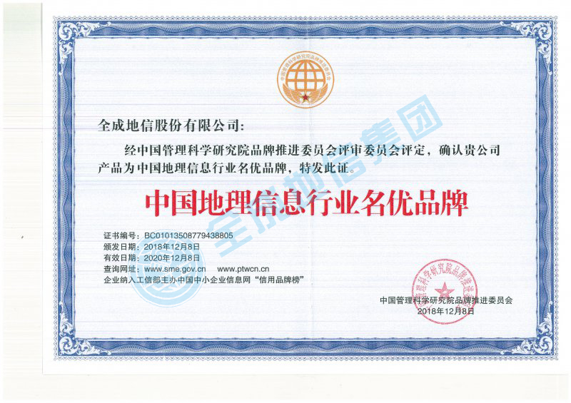 中國地理信息行業(yè)質(zhì)量可信品牌